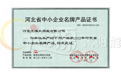 中小企業(yè)名牌產(chǎn)品證書(shū)