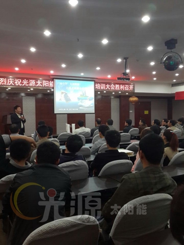 為加強(qiáng)公司與經(jīng)銷商之間的溝通,幫助經(jīng)銷商熟悉并掌握公司概況、產(chǎn)品知識(shí)、促銷技巧及售后服務(wù)知識(shí),河北光源太陽能科技有限公司2014廠商共贏睿智創(chuàng)富峰會(huì)于2014年4月17日晚在山西侯馬市怡鑫大酒店隆重開幕,本次峰會(huì)匯集來自運(yùn)城、河津及臨汾三大城市經(jīng)銷商,到會(huì)100余人。