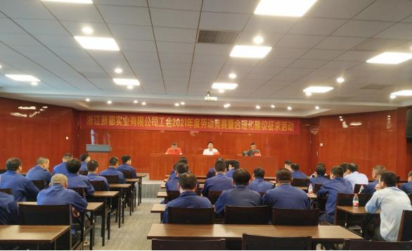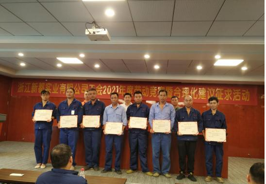 2021年8月13日上午,經(jīng)過兩個(gè)月如火如荼的“我為企業(yè)增核心競爭力”勞動(dòng)競賽及“我為企業(yè)謀發(fā)展”主題合理化建議征集活動(dòng),新都公司角逐出了一批技術(shù)過硬、技藝精湛的優(yōu)秀操作能手,也涌現(xiàn)出一批足智多謀的金點(diǎn)子職工,浙江新都實(shí)業(yè)有限公司工會(huì)委員會(huì)主席徐建根在新都綠色能源有限公司多功能會(huì)議室對他們進(jìn)行了表彰。