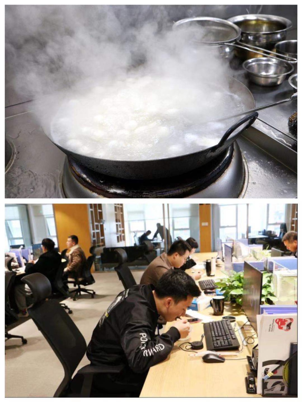 在職工中,有包湯圓的熟手,也有零基礎(chǔ)的新人,熟手帶新手,還時(shí)不時(shí)在捏制、擺放的湯圓造型上發(fā)揮一點(diǎn)小創(chuàng)意,大家越包越熟練,經(jīng)過(guò)一個(gè)多小時(shí)的忙碌,熱騰騰的湯圓終于出鍋了。這些湯圓將送到本部大樓的每一名職工手中。