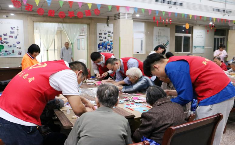 蔣院長(zhǎng)的發(fā)言結(jié)束后,志愿者們開(kāi)始分發(fā)制作京劇臉譜的材料并向老人們?cè)敿?xì)講解了臉譜制作的步驟和要點(diǎn)。在場(chǎng)的老人們都對(duì)此產(chǎn)生了濃厚的興趣,戴上了自己的老花眼鏡,開(kāi)始投入到制作京劇臉譜的活動(dòng)中?;顒?dòng)中志愿者們也為老人們進(jìn)行了熱心的指導(dǎo),并且?guī)椭先送瓿梢恍╇y度較大的臉譜制作步驟。 經(jīng)過(guò)一個(gè)小時(shí)的制作,每位老人都完成了自己的作品,并紛紛上臺(tái)進(jìn)行了展示,老人們的臉上都洋溢著開(kāi)心的笑容。