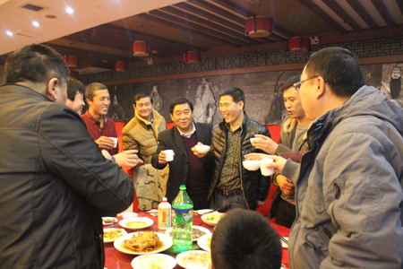 晚會(huì)結(jié)束后,春節(jié)晚宴開始。董事長李成彬、總經(jīng)理劉迎波與公司領(lǐng)導(dǎo)來到員工中間,向員工敬酒,祝賀新年。